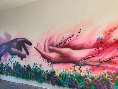 Muurschildering dorp