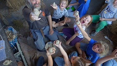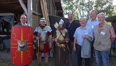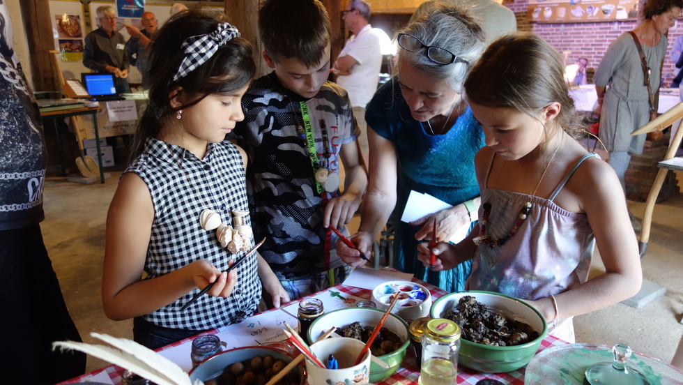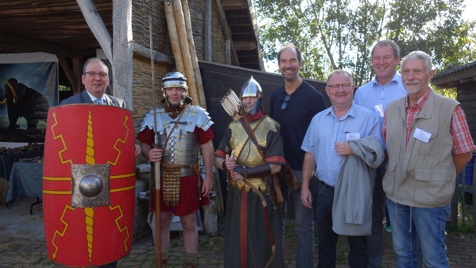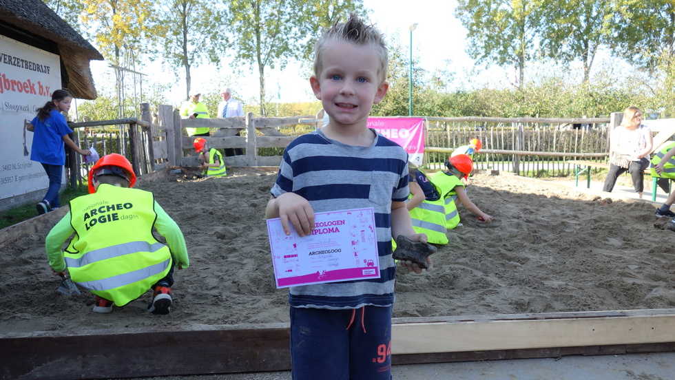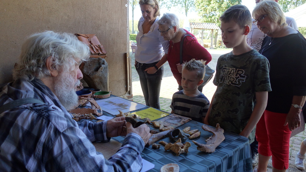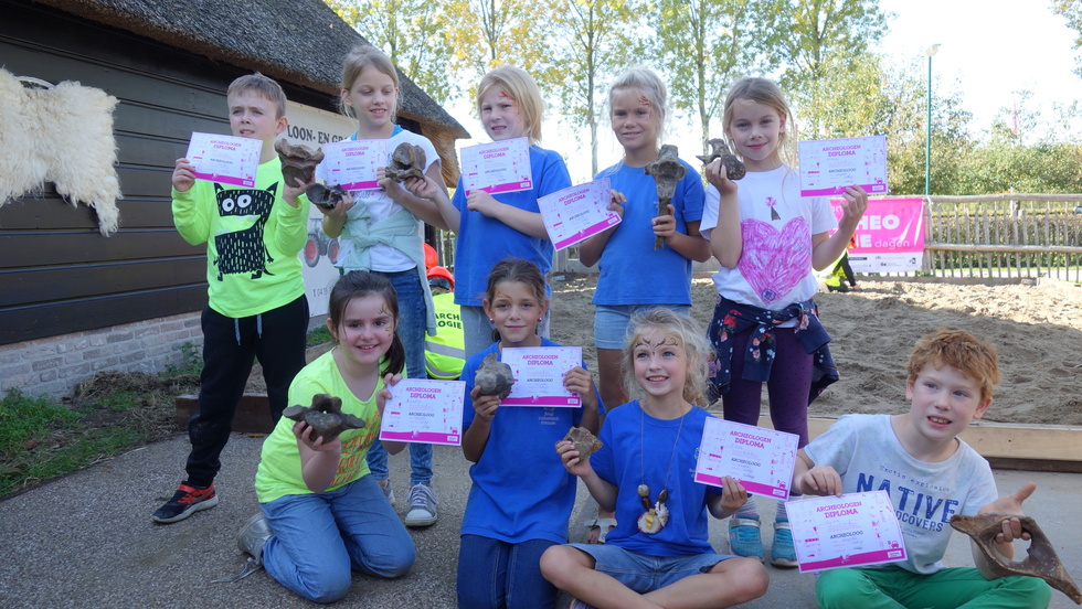 De heemkundekring Schijndel heeft op 13 en 14 oktober jl. twee prachtige archeologische dagen gehouden op de locatie van de Schaapskooi aan de Martemanshurk 12 in Schijndel waarbij het weer ook meespeelde. De zon scheen beide dagen en de duizenden bezoekers keken hun ogen uit wat niet alleen de heemkundekring Schijndel maar ook de andere heemkundekringen in Meierijstad hadden georganiseerd. Het begon met de officiële opening met gedeputeerde Henri Swinkels die met een groot aantal provinciale ambtenaren was gekomen. Zij waren bijzonder verrast wat ze allemaal zagen en wethouder Eric van den Bogaard die de openingshandeling verrichte door het overhandigen van een zwaard aan twee als Romeinse Krijgers uitgeruste mannen. De twee grootste publiekstrekkers waren toch wel de zandbak waar kinderen geleerd werd hoe je archeologische opgravingen moet doen en na een succesvolle opgraving kregen ze een echt diploma. De andere publiekstrekker was Christian Casseyas die vanuit het Préhistomuseum in Frémalle in België met outdoor animaties die kinderen aan zich wist te binden door ze te leren hoe ze vroeger met stenen vuur maakten en met klei een fluitje konden maken. Intens geboeid zaten ze in een kring om Christian met ouders in de buurt. Liefhebbers konden met de metaaldetector aan de slag. In de Schaapskooi werden archeologische vondsten getoond en hoe die gedetermineerd worden. Bezoekers keken geboeid toe. De Kringen presenteerden zich daar ook.