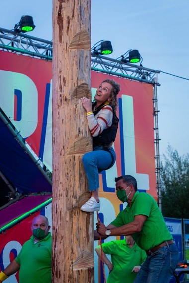 De paal, die dit jaar 3 meter langer was dan normaal, 16 meter maar liefst, was akelig hoog en bijna iedereen wist de bel te luiden. Een knappe prestatie. Iedereen die beneden kwam was dan ook buiten adem, geen makkie dus.