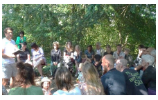 Poëzie Een klein maar ook bijzonder plekje was in het bos te vinden. Enkele vertellers van de bibliotheek De Meierij vertelden op de ene plek het begin van een verhaal en een stuk verder maakten zij het verhaal in een andere taal af. De stadsdichter Rick Terwindt hield een poëzietafel. Een openbaring hoe zij met taal kunnen spelen en wat dit doet met mensen.