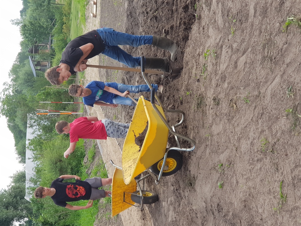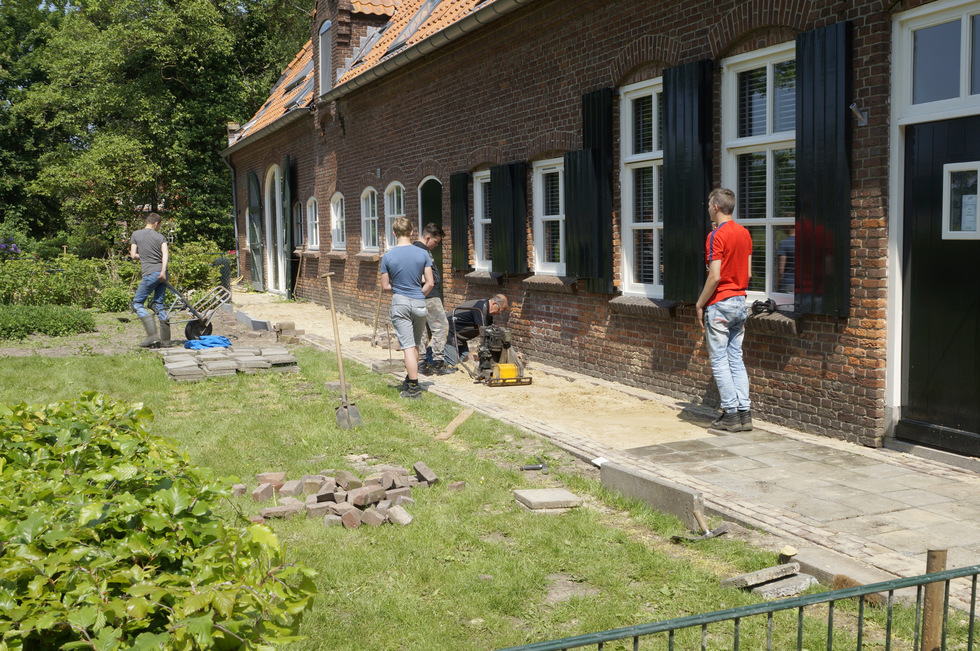 Een dag per week stroopt een groep leerlingen van het Elde College de mouwen op. Ze zijn serieus aan de slag om de tuin rond Woonboerderij Schijndel in te richten. En dat is veel meer dan een beetje tuinieren. De leerlingen pakken alle klussen aan die erbij komen kijken. Frank Claassen van de Woonboerderij is op deze dagen hun leermeester. “Het gaat prima”, vertelt Frank. “We werken met plezier en al doende leren de jongeren vaardigheden die ze kunnen gebruiken als ze over wat jaren aan het werk gaan."